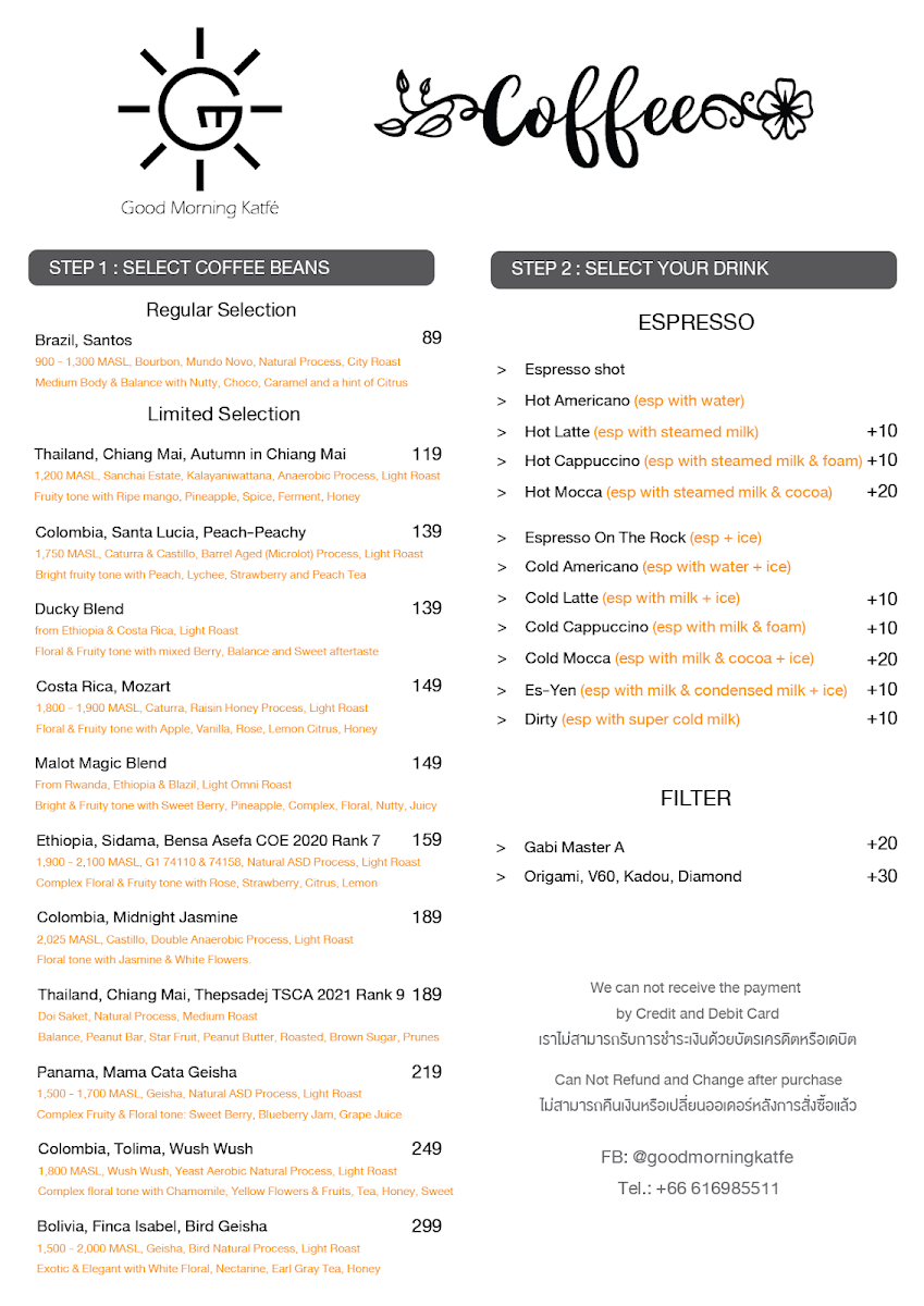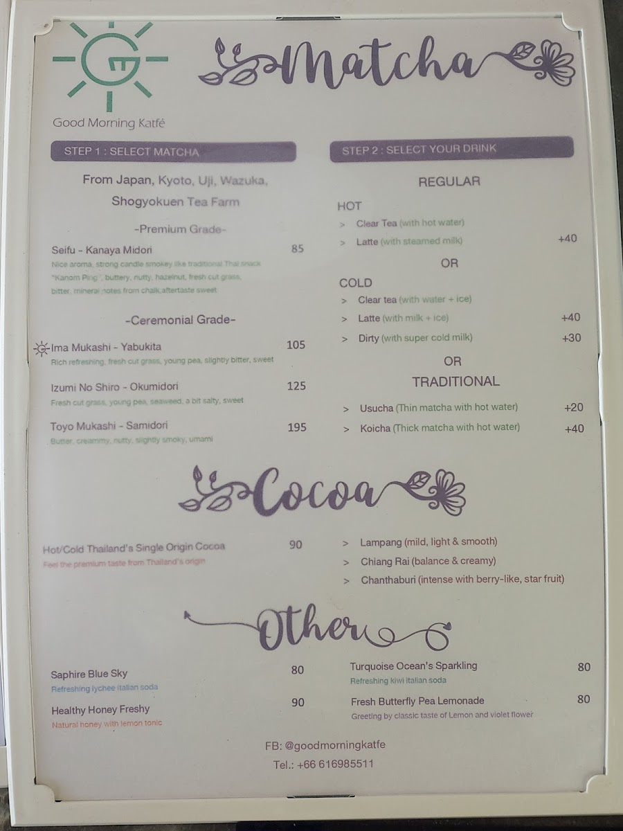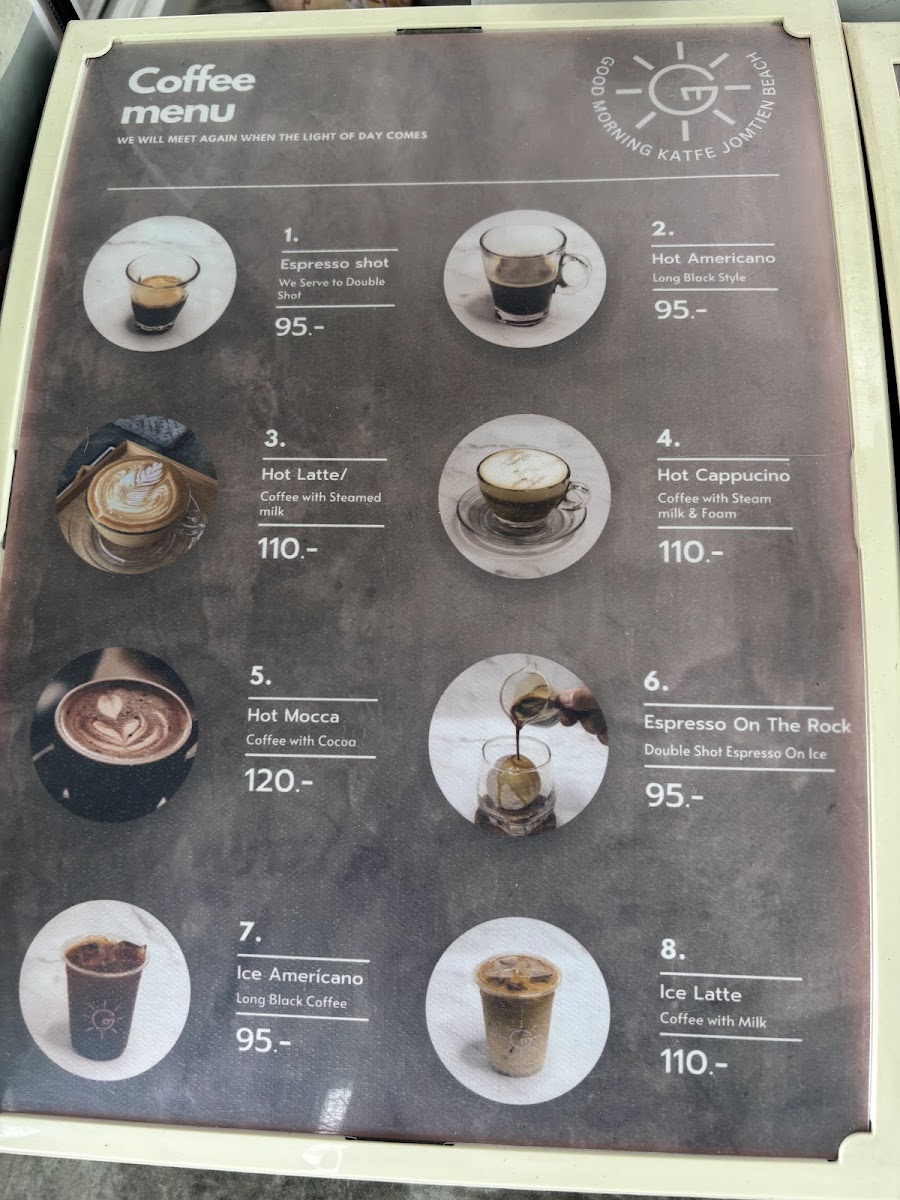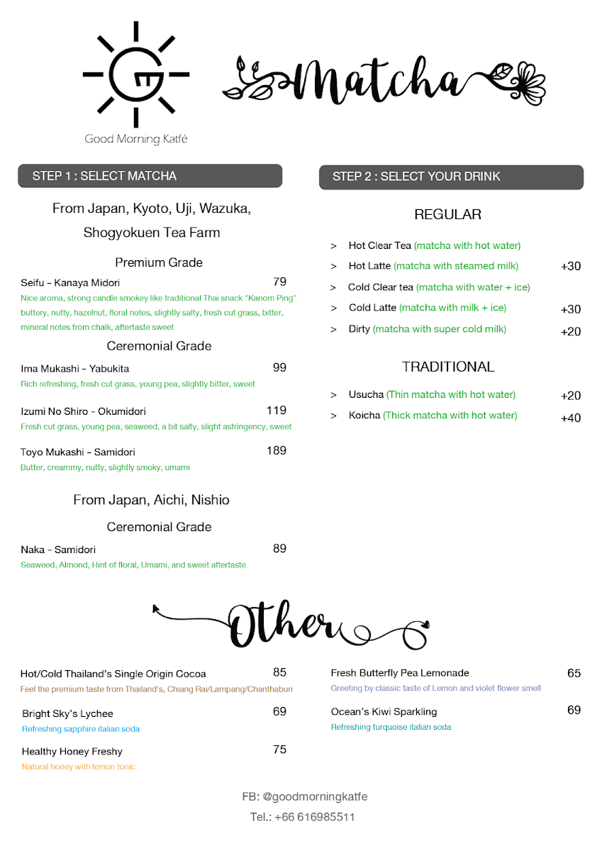 Good Morning Katfé “Specialty Coffee and Matcha on the beach” Menu
